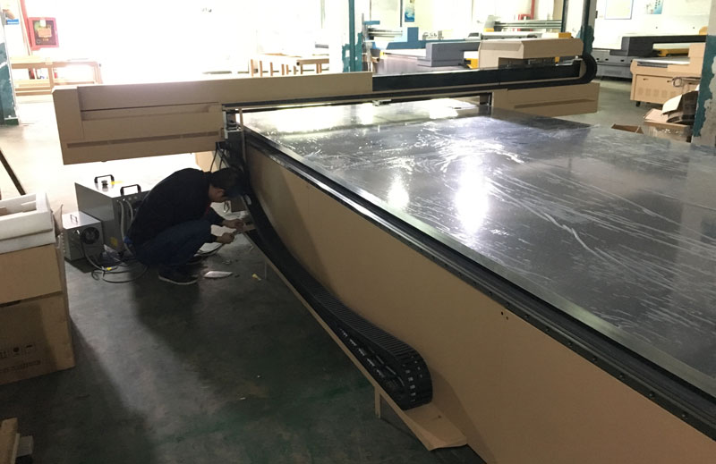 龍潤作為高新技術企業,在對UV打印機技術的精益求精以及對UV打印機的產品質量的嚴格控制從來都沒有松懈過,近日,又有大型廠家在龍潤定制了一臺單次打印幅面達12平方米的UV打印機,在經過長達7*24小時的不斷的穩定性打印測試后,終于得以登場、出貨!